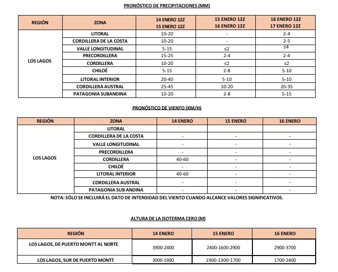 La Dirección Regional de SENAPRED Los Lagos declaró Alerta Temprana Preventiva (ATP) para toda la Región de Los Lagos, debido a un evento meteorológico pronosticado para este miércoles 14 de enero, medida que se mantendrá vigente mientras las condiciones de riesgo así lo ameriten.