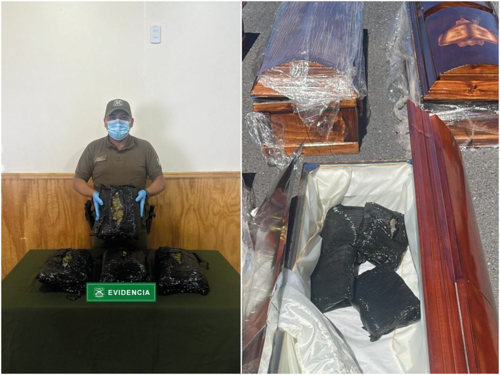 Tras una revisión minuciosa de cada uno de los féretros, Carabineros localizó diversos paquetes que contenían las sustancias ilícitas